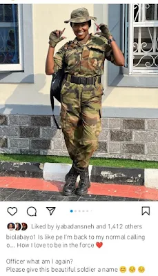 The movie star, shared photos of her in a military outfit probably from a movie set, as she expressed her love for the profession.